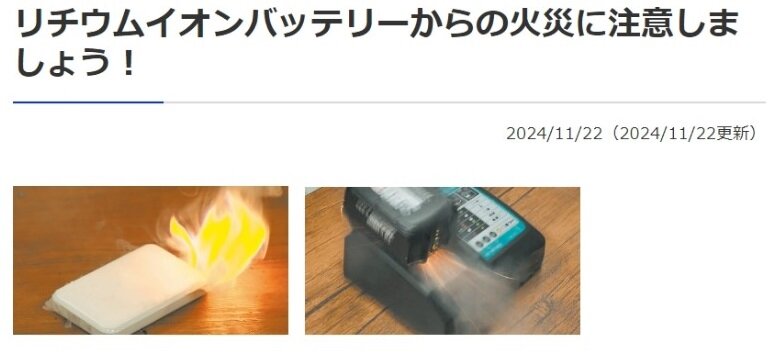 リチウムイオンバッテリーからの火災に注意しましょう!
