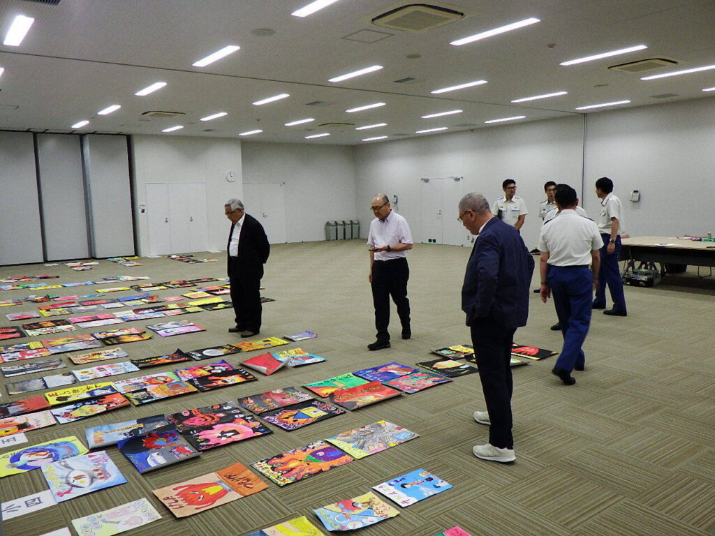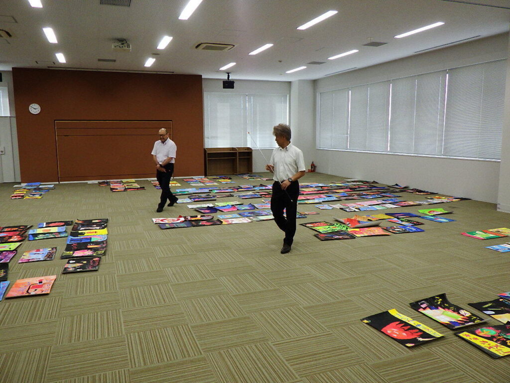 盛岡市教育委員会(中学校教諭)の協力を得て行われた防火ポスター審査会の様子です。