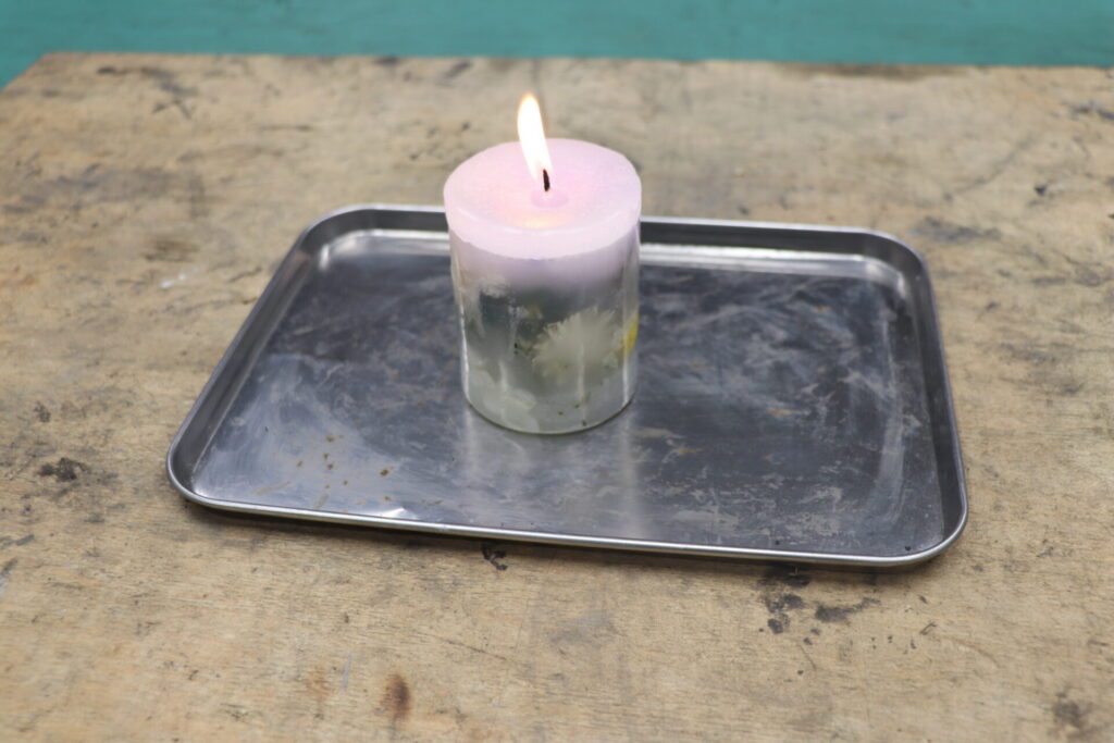 - キャンドルの受け皿は、金属製・陶磁器製のものを使用し、溶けたロウが溢れないものを使用する。