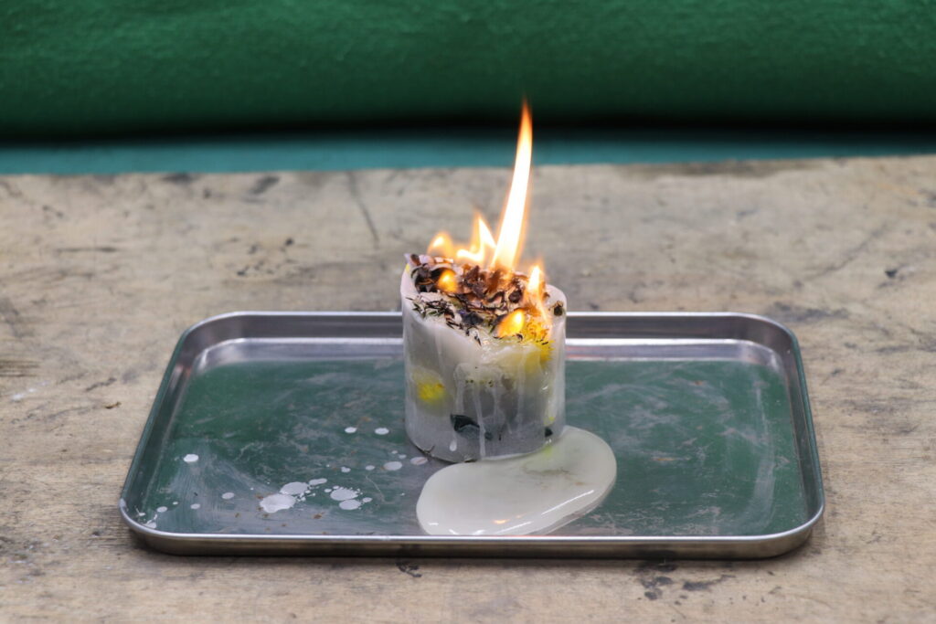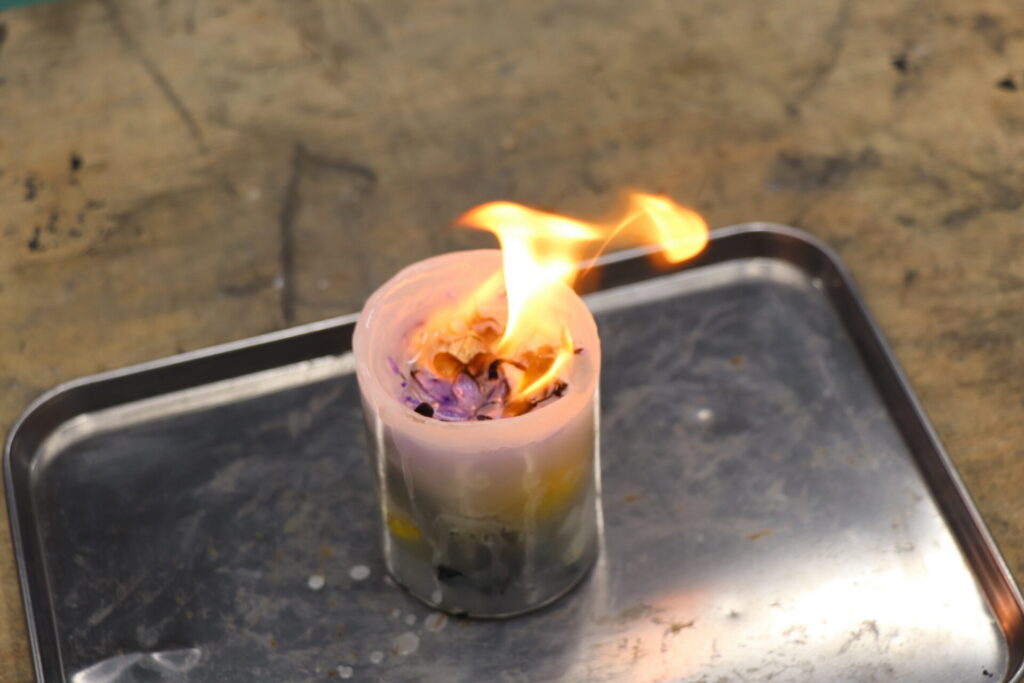 4.ロウが流れ出てドライフラワーが露出したことにより燃焼拡大