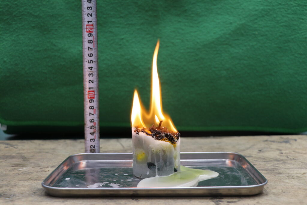 ※今回、燃焼実験を行ったボタニカルキャンドルは、当消防本部の職員が制作したものです。